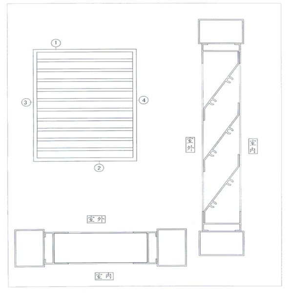 層防雨百葉窗用于對(duì)長(zhǎng)期有通風(fēng)要求的機(jī)房或其它公眾場(chǎng)合,它由帶集水溝(JYGC無(wú))的防雨葉片的帶滴水框的側(cè)框架組成。該窗體即使在瓢潑大雨之時(shí),不僅能有效地阻止雨水打進(jìn)室內(nèi),而且在整個(gè)百葉窗的迎風(fēng)面不會(huì)形成水簾,從而保證了正常的設(shè)計(jì)通風(fēng)要求。